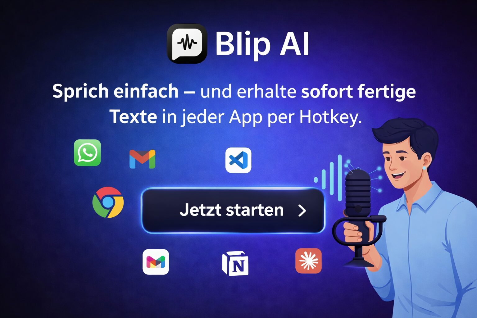 Blip AI ist ein Diktierwerkzeug, das deine gesprochene Sprache auf Knopfdruck in fertigen Text in jeder App verwandelt. Du drückst eine Hotkey‑Kombination, sprichst frei los und kannst das Ergebnis sofort in E‑Mails, CRM‑Notizen oder Messaging‑Tools einfügen.